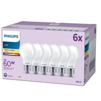 | Herstellername | Box 6 stuks - Philips LED Lamp Mat - 60 W - E27 - Warmwit licht | |