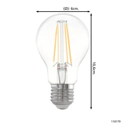 Description Eglo LED Poire E27 Filament Claire 7.3W 806lm - 827 | Dimmable - Remplacement 60W