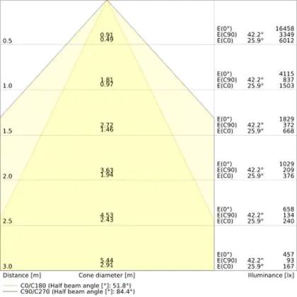 Le code couleur se compose de l'indice de rendu des couleurs (IRC) et de la température de couleur (Kelvin). Le premier chiffre indique le rendu des couleurs (1 = très mauvais rendu des couleurs, 9 = meilleure authenticité des couleurs). Le deuxième et troisième chiffre indiquent la température de la couleur. Exemple : Le code couleur "830" indique que la lampe a un bon rendu des couleurs (8) et une couleur de lumière blanche chaude (30 = 3000K). |