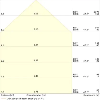 • Angle de diffusion: 95 °