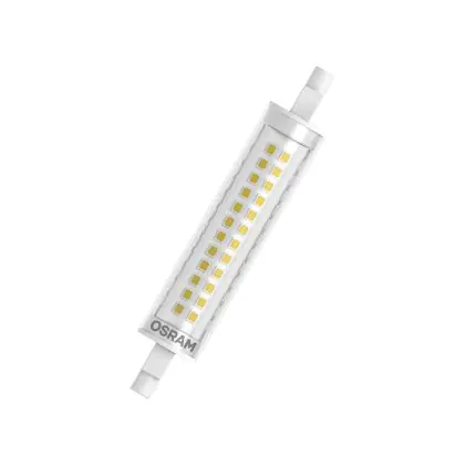 Osram Line LED R7s 118mm 12W 1521lm - 827 | Remplacement 100W est une ampoule tubulaire linéaire à double extrémité. Ce type d’ampoule permet de délivrer une lumière homogène à 360° avec comme température de couleur 2700K - Blanc Très Chaud. Cette ampoule LED R7s de chez Osram est la solution idéale pour le remplacement de vos anciennes ampoules halogènes. Cette ampoule LED n’a pas besoin de transformateur, elle fonctionne avec 230V et peut se connecter directement sur le secteur électrique.