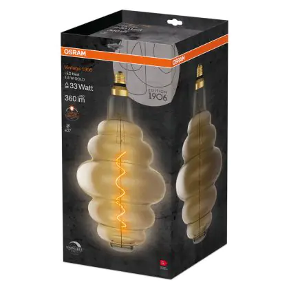 Description Osram Vintage 1906 LED E27 Special Filament Gold 4.8W 360lm - 822 Extra Warm White | Dimmable
