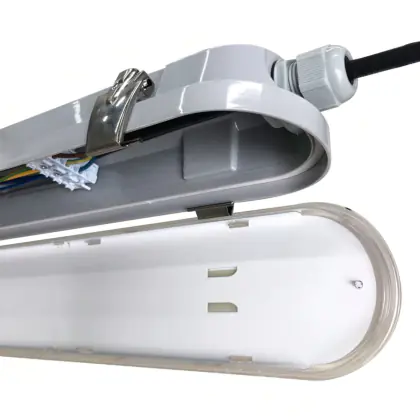 La réglette LED, Réglette LED Étanche V2.0 25W 3500lm - 865 | 150cm - Câblage Traversant (5x2.5mm2) est conçue pour remplacer les réglettes TL-D traditionnelles et permettant d’économiser jusqu’à 50% d’énergie. Très souvent utilisé pour l’éclairage d’entrepôts, d’usines, de parking et d’autres grands espaces extérieurs. Très simple d’installation, cette réglette de 150cm peut se fixer au plafond et au mur et projette 6500K - Lumière du Jour, comme couleur de lumière. La Réglette LED Étanche V2.0 25W 3500lm - 865 | 150cm - Câblage Traversant (5x2.5mm2) dispose d’un indice de protection IP65 à l’eau et la poussière et d’une résistance aux chocs IK10.